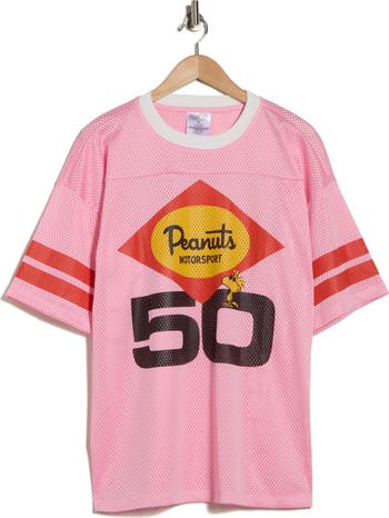 You'll look like a champion of style in this jersey-inspired T-shirt featuring sleeve stripes and a Peanuts® motor sport graphic.