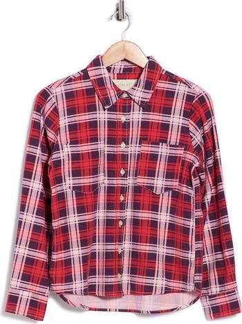 Great to layer or wear solo, this vibrant plaid button-up shirt is cut from breathable cotton and framed by a high-low hem for casual appeal.
