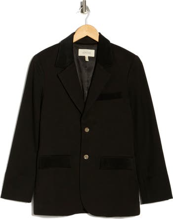 Refresh your work-to-weekend wardrobe with this notch-lapelled blazer trimmed in velvet at the pockets.