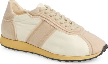Raw-edge camel hair contrasts add an intentionally deconstructed look to this casual sneaker designed with a plush lining and set on a grippy sole with square lugs.