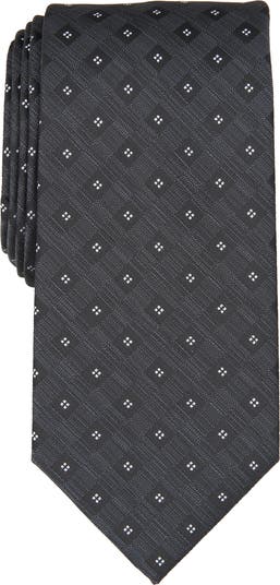A geometric pattern texturizes a sophisticated tie that offers a refined appearance for a day at the office.