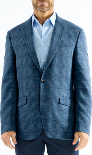 Subtly textured lino weave in a windowpane pattern distinguishes a slim-fit sport coat tailored with clean lines supported by light padding in the shoulders. Styled with traditional notched lapels and lightly fitted in the waist, it adds a smart finish to any semiformal look.
