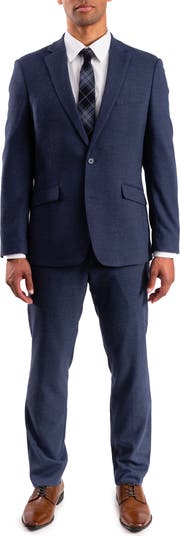 Timeless sharkskin fabric lends a refined appearance to this trim-fit suit that's tailored to enhance in-office or off-duty looks.