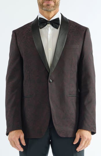 Satin shawl lapels offer a polished counterpoint to the paisley jacquard construction of this dapper evening jacket styled to elevate any formal look.