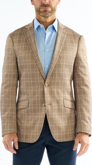 Elevate your well-dressed look with this cotton-enhanced knit sport coat styled with a plaid weave, two-button closure and plenty of pockets.