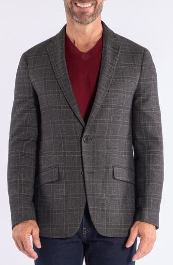 Step up your style in this textured windowpane-knit sport coat with notched lapels and plenty of pockets.