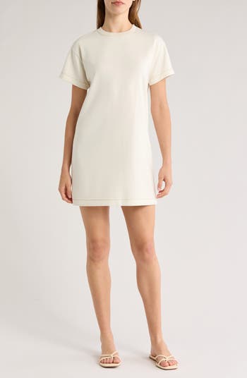 Build out your collection of timeless capsule essentials with this boxy T-shirt dress traced with subtle contrast topstitching along the cuffs and hemline.