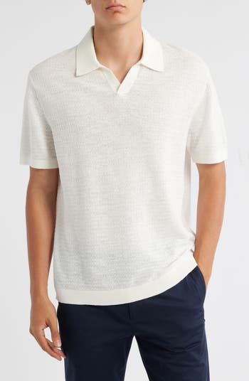 Topped with a cool johnny collar, this polished take on the classic polo is knit from a breathable Italian cotton-linen blend. The refined texture and lightweight construction set the standard for easy transitional layering.