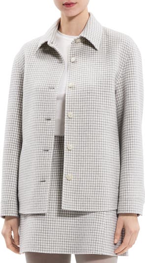 This polished shirt-jacket is crafted from sturdy wool and covered in a light check pattern that complements the easy silhouette.
