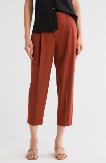 Front pleats enhance the polished appeal of high-waisted trousers cut from a stretch-wool blend in an ankle-skimming silhouette.