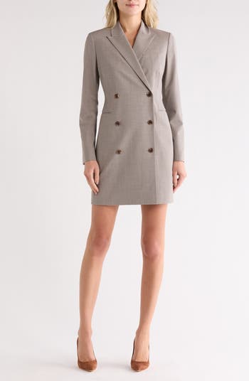 Bring posh style to your workweek rotation in this blazer-inspired dress defined by a double-breasted placket and peaked lapels.