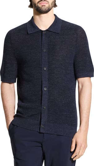 Lightweight linen and breathable cotton bring exceptional softness to a subtly ribbed cardigan designed with a pointed collar and short sleeves for a sporty, sunny-day finish. Wear it by itself or layered and unbuttoned to change up your look without losing your comfort.