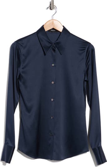 Perfect Fitted Stretch Silk Button-Up Shirt