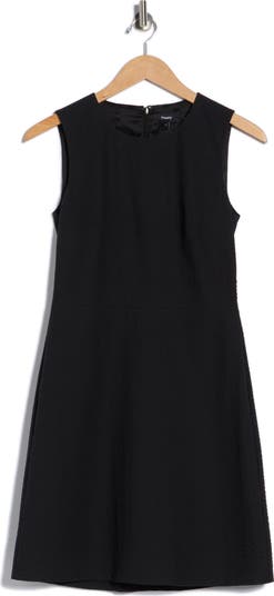 A sleeveless LBD cut from breathable stretch-cotton seersucker is tailored for a roomy fit through the waist and finished with a gently flaring A-line skirt.