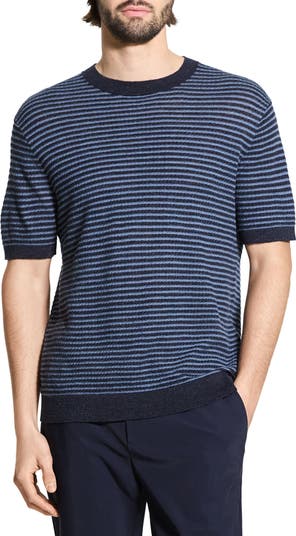Lightweight linen and breathable cotton enhance the easy-wearing comfort of a sweater knit in rings of softly textured stripes and crafted with short sleeves for sunny-day versatility. Wear it with any casual outfit to create an elevated look that still feels laid-back and relaxed.