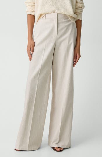Topped with a high waist, these striped cotton-and-linen pants are kissed with stretch for breathable comfort that moves with you.