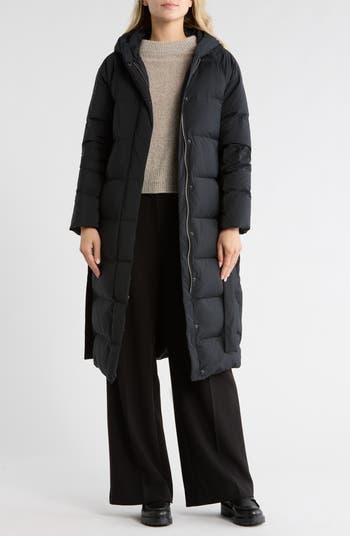 The perfect layering piece when the temperature drops, this channel-quilted coat is cinched with a tie belt and filled with down insulation.
