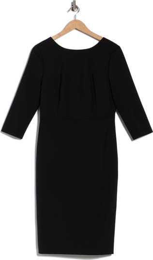 A solid hue lends desk-to-dinner versatility to this three-quarter-sleeve dress made from wool with a kiss of stretch.