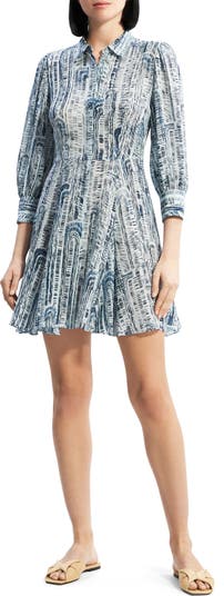 An eye-catching print adorns this polished mini shirtdress cut from luxurious silk for an elevated feel.