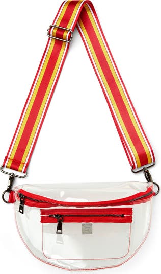 Easily pass through security at your next sporting or concert event with this clear compact crossbody featuring removable straps to convert it as a belt bag. The webbed straps and bag's trim feature the NFL Kansas City Chiefs' colors.