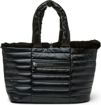 Duplex Reversible Faux Fur Trim Tote & Pouch