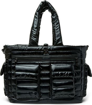 Perfectly personalize your look with the styling versatility of this fully reversible tote boasting a smooth, sleek exterior that can be flipped inside out and switched to a pocket-popped alternative.