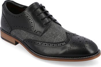 Herringbone knit is trimmed by polished brogue details in this classic wingtip derby that features a classic Tru Comfort form insole.