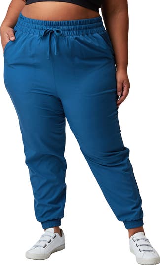 Sport a stylishly easy look in these elastic/drawstring waist joggers that taper at the ankles and are crafted from stretchy tech fabric.