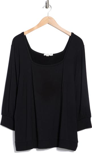 Gently gathered sleeves and a square neckline add a charming finish to a solid sweater knit top worthy of any wardrobe.