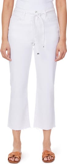 A braided belt adds a boho-chic detail to these kick-flare jeans made with raw-cropped hems and a hint of stretch.
