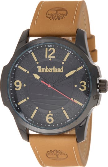 The legendary craftsmanship of Timberland distinguishes an everyday timepiece featuring a brand-signature emblem in the dial and on the strap for heritage appeal.