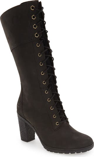 A tall, streamlined silhouette and chunky stacked heel further the vintage influence of a full-grain leather boot that exudes rugged femininity. The breathable lining and laces are made from recycled plastic bottles to reflect Timberland's commitment to sustainability.