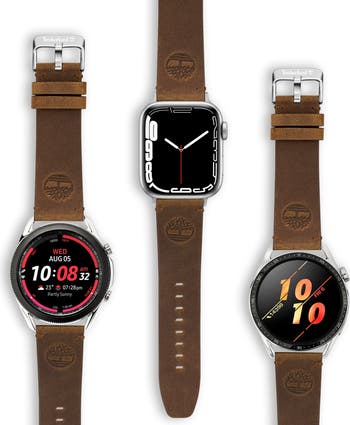 Refresh your smartwatch or traditional watch with this water-repellent leather strap embossed and engraved with Timberland logos.