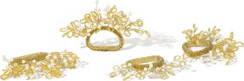 Inspired by golden flowers, this set of four beaded napkin rings brings a luminous touch to elegant hosting.