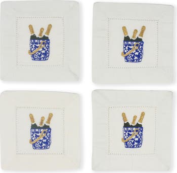 Bring festive charm to your gatherings with this set of hand-embroidered cocktail napkins that are perfect for adding celebratory flair to your gatherings.
