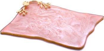 Elegantly display charcuterie, hors d'oeuvres, desserts and more on this marbled resin serving board styled with a goldtone flower accent.