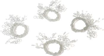 Inspired by frost-kissed winter branches, this set of four beaded napkin rings brings a whimsical touch to hosting.