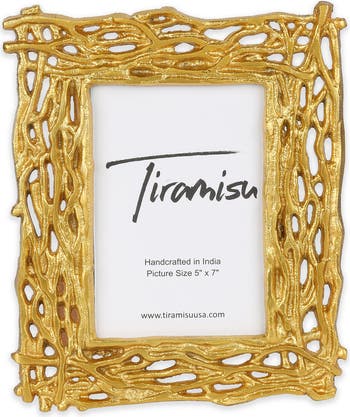 Showcase your favorite memories in this elegant picture frame crafted from gleaming metal and adorned with intricate, branch-like patterns.