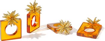 Inspired by golden urchins, this set of four beaded starburst napkin rings brings a luminous touch to hosting.