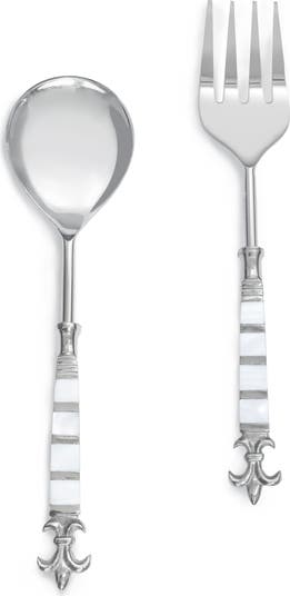 Dish up a salad or any favorite dish with this beautiful serving set that's formed from stainless steel and detailed with mother-of-pearl accents.