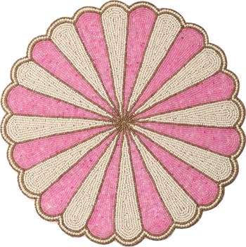 Pops of color beam along this scalloped beaded placemat that'll serve as a stylish and protective base for your tablescape.