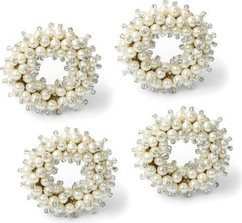 Inspired by milky heirloom jewelry, this set of four faux pearl-beaded napkin rings brings an elegant touch to hosting.