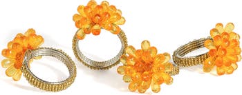 Put an elegant finishing touch to your tablescape with this set of napkin rings that features a beaded flower design.