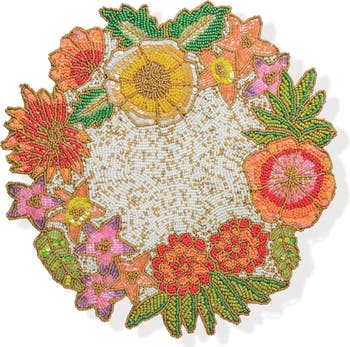 Elevate your tablescape this entertaining season with this decorative placemat hand-beaded in a floral silhouette.