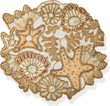 Hand-sewn, sequins and glass beads make a dramatic statement over the design of a stunning charger, the perfect accessory for high-fashion, contemporary tablescapes.