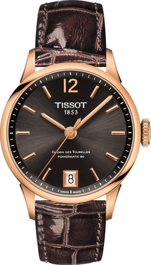This heritage watch—named for the street where the Tissot factory started in 1907—exemplifies the art of Swiss timekeeping with its elegant, contemporary case and precise automatic movement. An alligator-embossed leather strap furthers the luxurious, yet accessible aesthetic.
