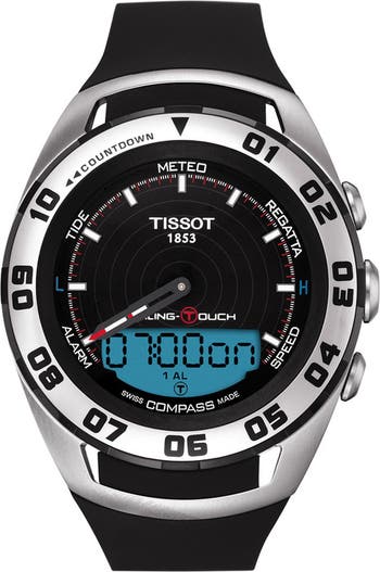 - - Gender: Men's - Dial Color: Black - Strap Material: Rubber - Case Material: Stainless Steel - Movement: Swiss Quartz Tactile - Crystal: Tactile scratch-resistant sapphire crystal with antireflective coating - Closure: Folding Clasp With Safety And Diver Extension - Case Diameter: 45mm - Water Resistance: 10 bar (100 m / 330 ft) - Made in Switzerland