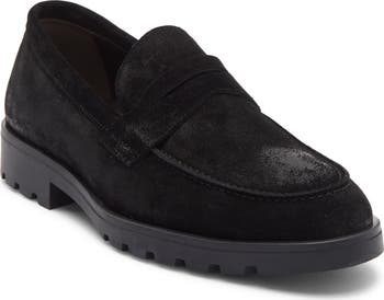 Supple leather maintains the impeccable style of a Italian-crafted penny loafer grounded by a cushioned arch-supporting insole set atop a lugged rubber sole.