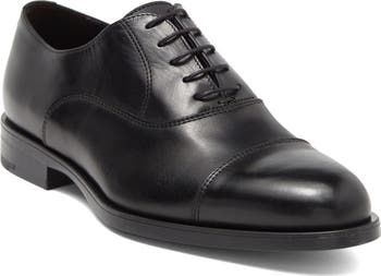 An Italian-crafted leather oxford offers polished style with a sleek cap toe, low block heel and flexible rubber sole.