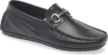 Gleaming bit hardware shine atop a moc-toe loafer rendered in smooth leather and grounded by a nubby rubber sole.